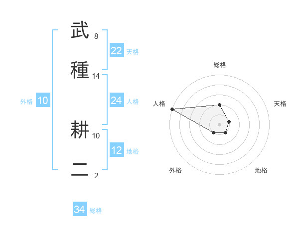 武種 耕二さんの総格は34画の2点!