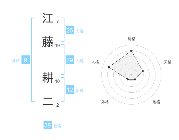 江藤 耕二さんの総格は38画の4点!