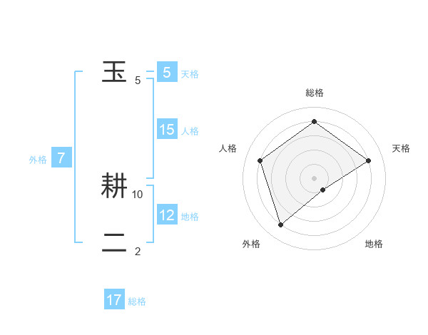 玉 耕二さんの総格は17画の4点!