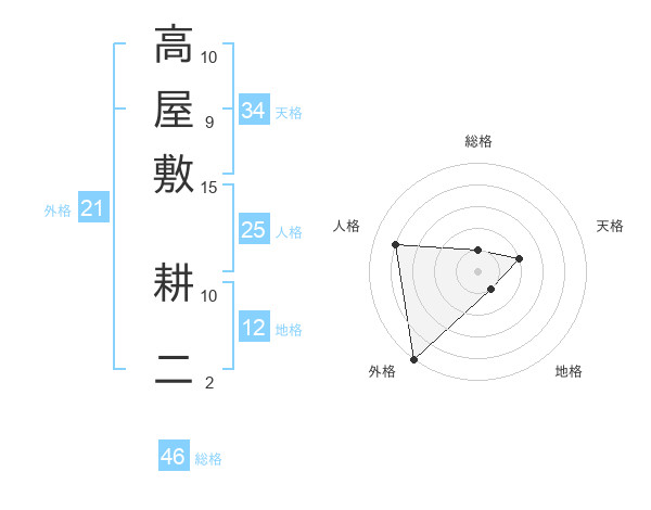 高屋敷 耕二さんの総格は46画の1点!