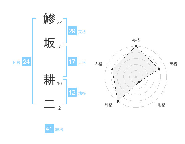 鰺坂 耕二さんの総格は41画の5点!