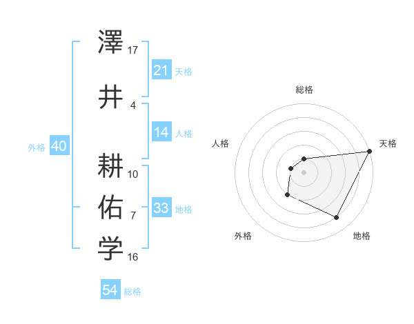 澤井 耕佑学さんを姓名の画数から五運を鑑定
