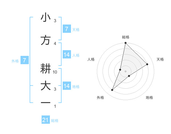 小方 耕大ーさんを姓名の画数から五運を鑑定