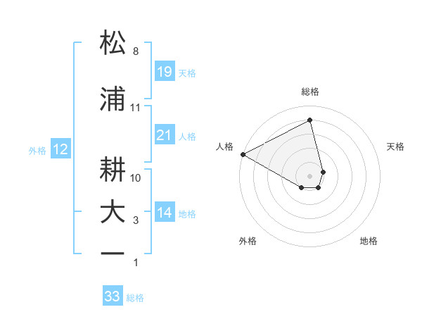 松浦 耕大ーさんを姓名の画数から五運を鑑定
