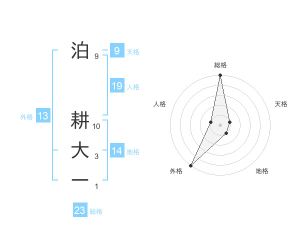 泊 耕大ーさんを姓名の画数から五運を鑑定