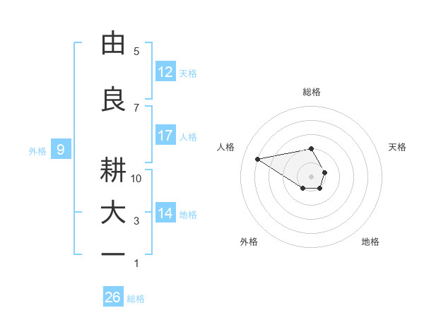 由良 耕大ーさんの総格は26画の2点
