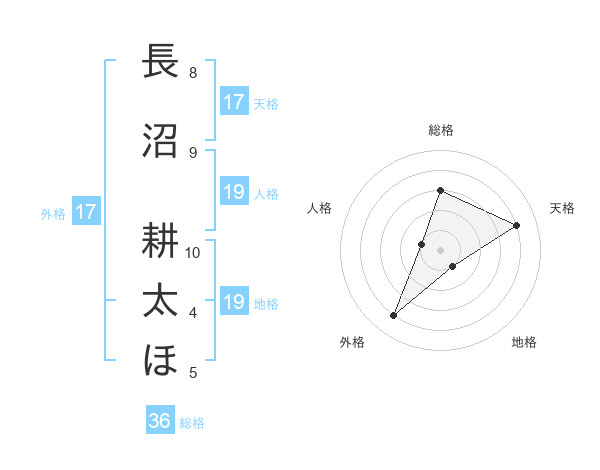 長沼 耕太ほさんの天格は17画の4点!
