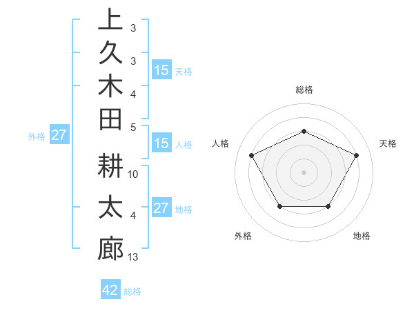上久木田 耕太廊さんを姓名の画数から五運を鑑定
