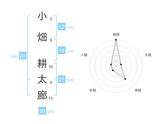 小畑 耕太廊さんを姓名の画数から五運を鑑定