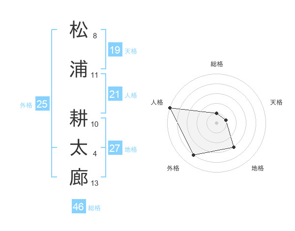 松浦 耕太廊さんを姓名の画数から五運を鑑定