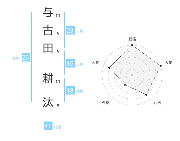 与古田 耕汰さんを姓名の画数から五運を鑑定