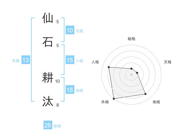 仙石 耕汰さんを姓名の画数から五運を鑑定