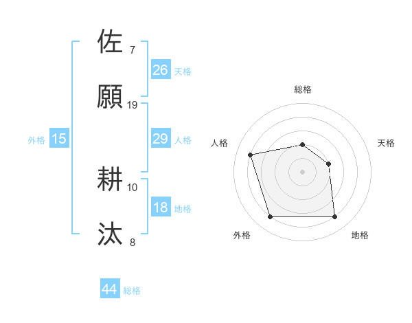 佐願 耕汰さんを姓名の画数から五運を鑑定
