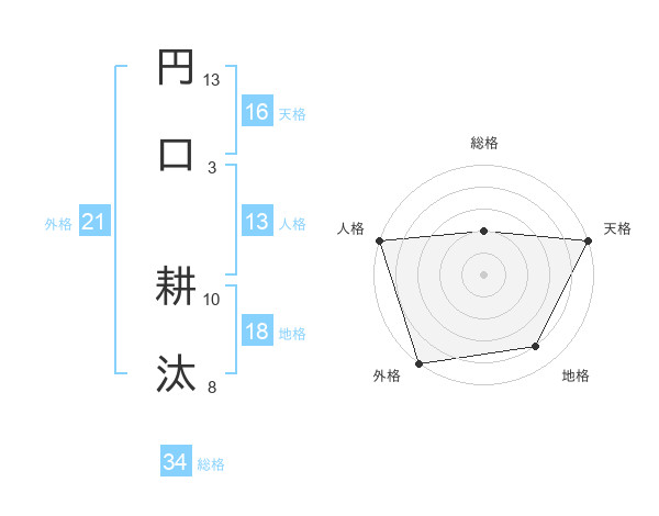 円口 耕汰さんを姓名の画数から五運を鑑定