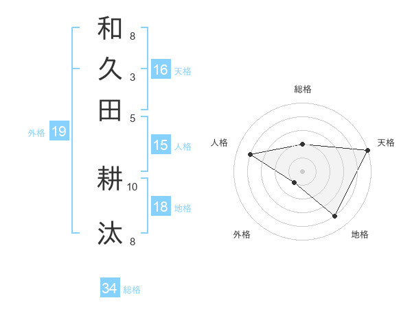 和久田 耕汰さんを姓名の画数から五運を鑑定