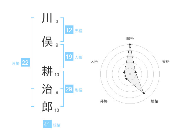 川俣 耕治郎さんを姓名の画数から五運を鑑定