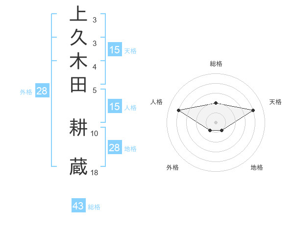 上久木田 耕蔵さんの名前の鑑定結果は!