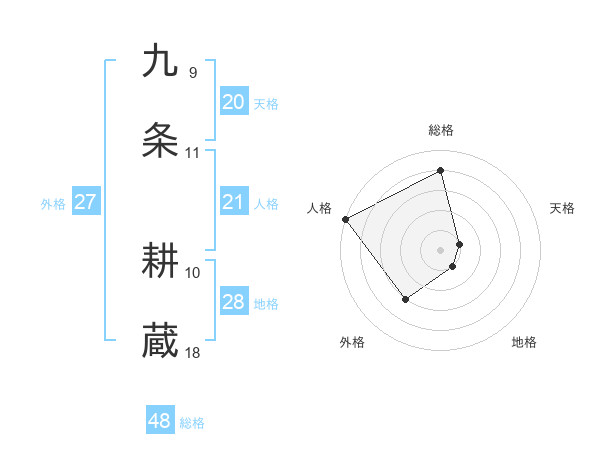 九条 耕蔵さんを姓名の画数から五運を鑑定