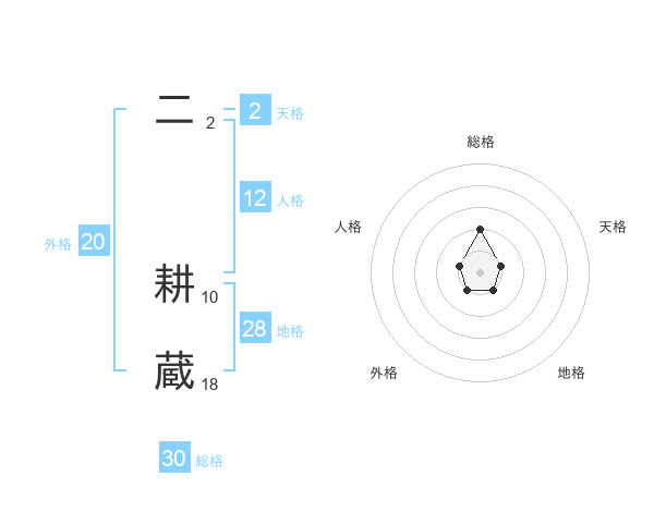 二 耕蔵さんの総格は30画の2点!