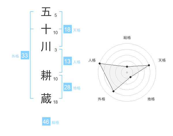 五十川 耕蔵さんを姓名の画数から五運を鑑定