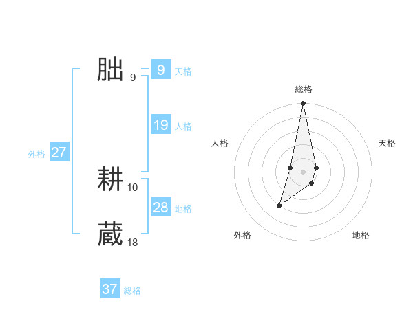 朏 耕蔵さんの総格は37画の5点!