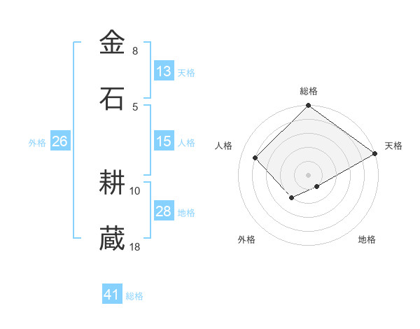 金石 耕蔵さんの天格は13画の5点!