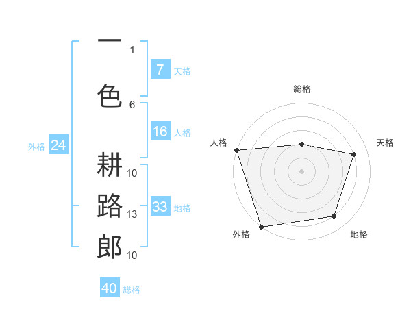 一色 耕路郎さんの外格は24画の5点!