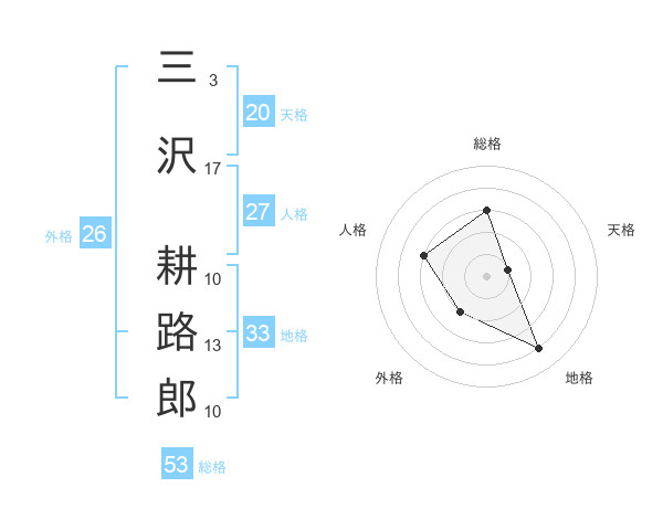 三沢 耕路郎さんを姓名の画数から五運を鑑定