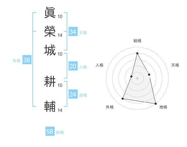 眞榮城 耕輔さんを姓名の画数から五運を鑑定