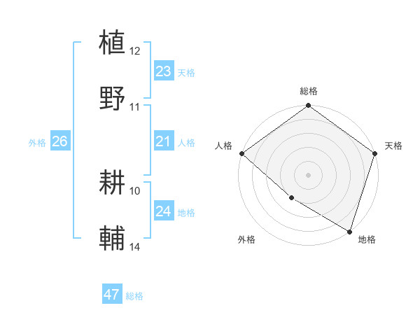 植野 耕輔さんを姓名の画数から五運を鑑定