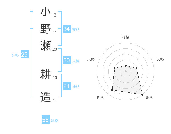 小野瀬 耕造さんの総格は55画の1点