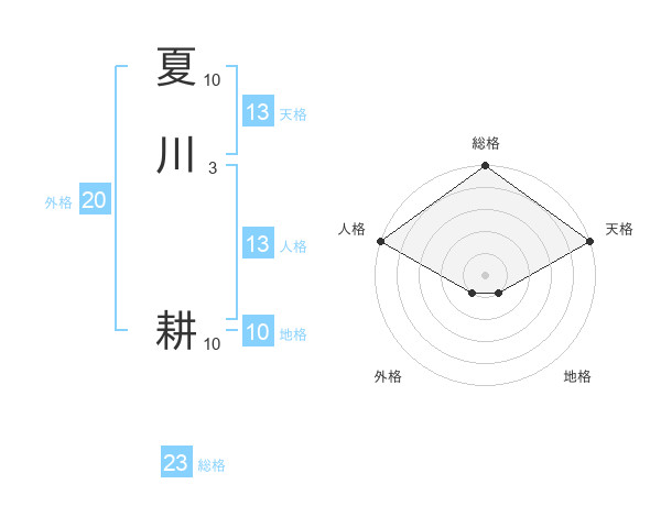 夏川 耕さんの天格は13画の5点!