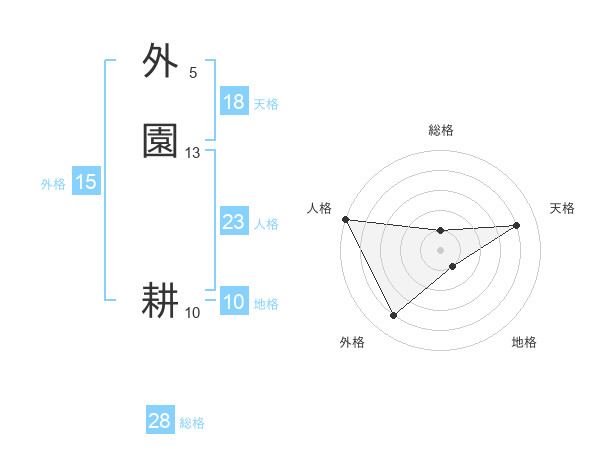 外園 耕さんの天格は18画の4点!