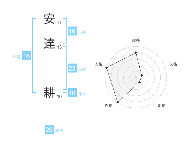 安達 耕さんの総格は29画の4点!