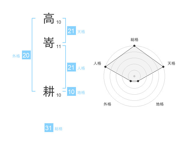 高嵜 耕さんの総格は31画の5点!
