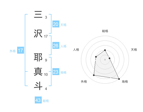 三沢 耶真斗さんの総格は43画の2点!
