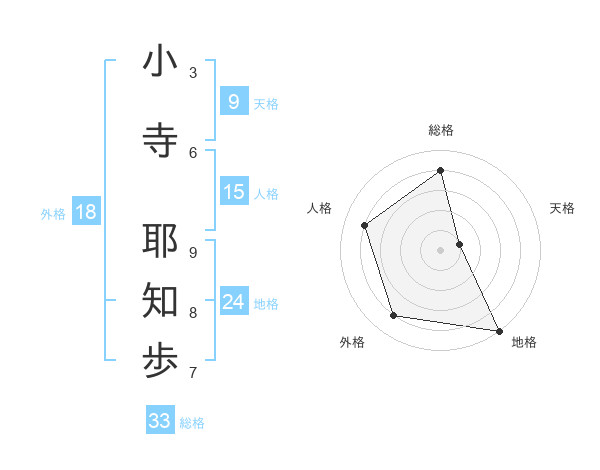 小寺 耶知歩さんを姓名の画数から五運を鑑定