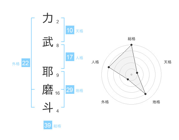 力武 耶磨斗さんを姓名の画数から五運を鑑定