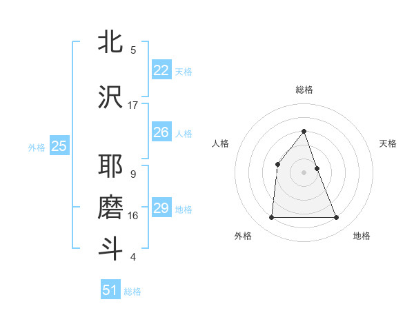 北沢 耶磨斗さんの総格は51画の3点!