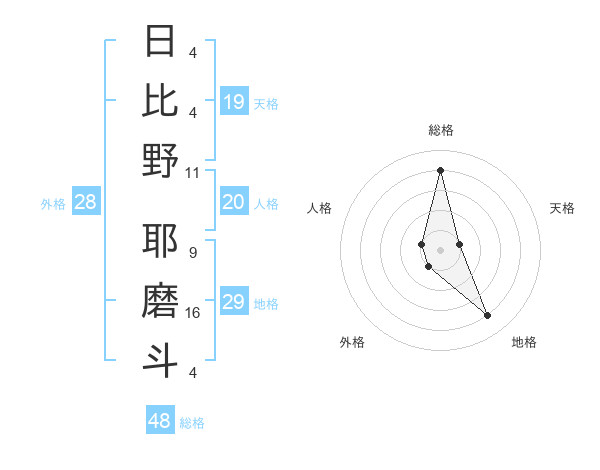 日比野 耶磨斗さんを姓名の画数から五運を鑑定