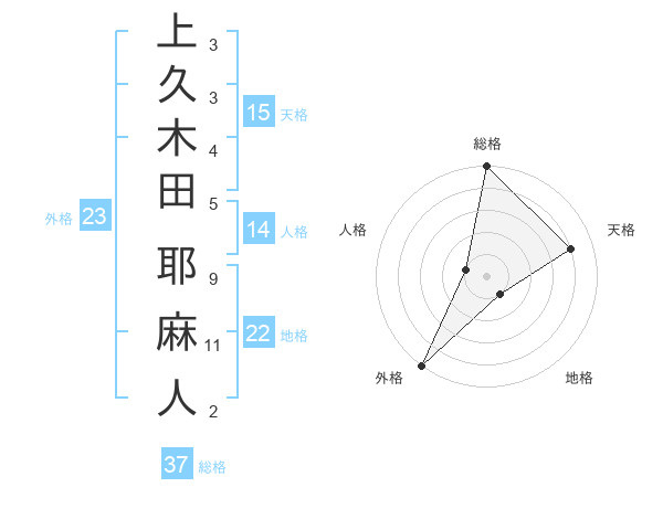 上久木田 耶麻人さんを姓名の画数から五運を鑑定