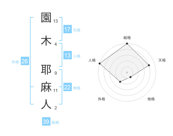 園木 耶麻人さんの総格は39画の5点!