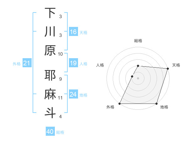 下川原 耶麻斗さんを姓名の画数から五運を鑑定