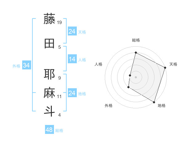 藤田 耶麻斗さんを姓名の画数から五運を鑑定