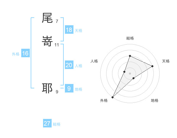 尾嵜 耶さんを姓名の画数から五運を鑑定