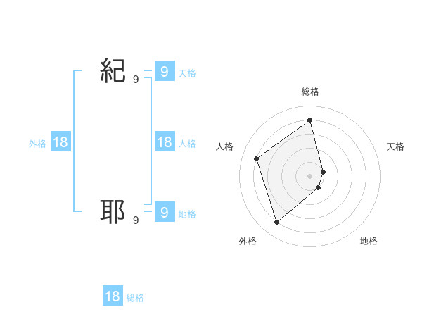 紀 耶さんの総格は18画の4点!