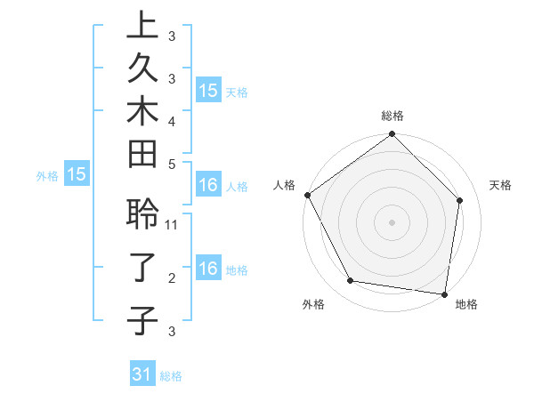 上久木田 聆了子さんを姓名の画数から五運を鑑定