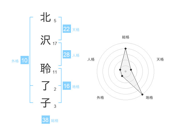 北沢 聆了子さんを姓名の画数から五運を鑑定