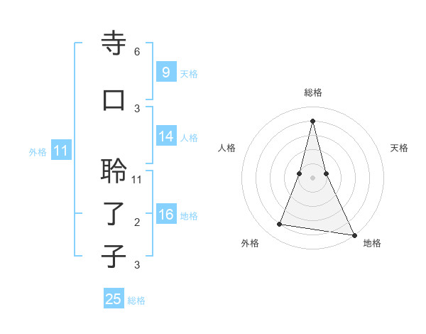 寺口 聆了子さんの総格は25画の4点