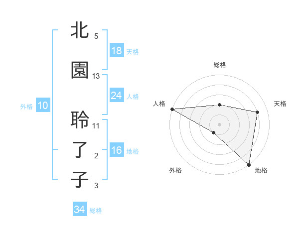 北園 聆了子さんを姓名の画数から五運を鑑定